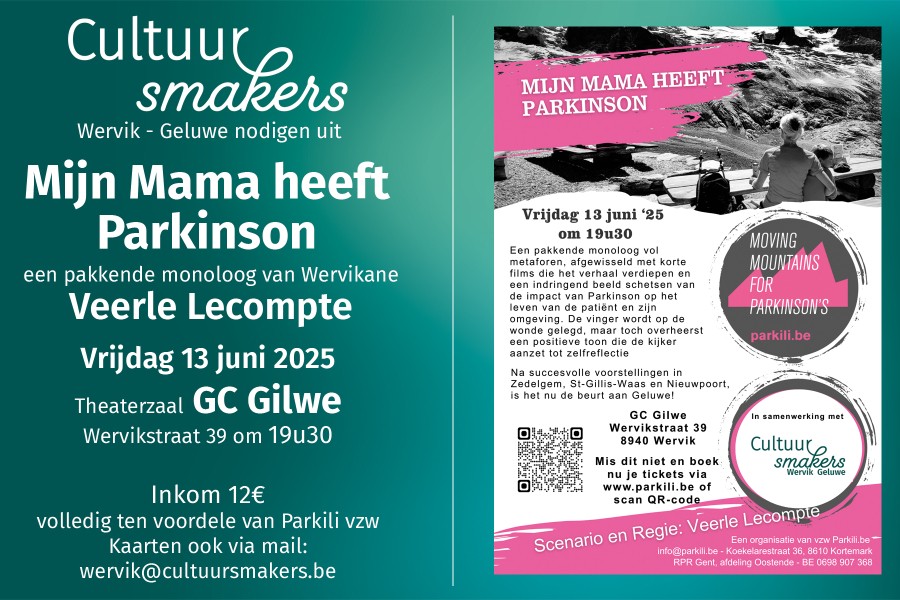 “MIJN MAMA HEEFT PARKINSON" is een monoloog vol metaforen, afgewisseld met kortfilmpjes die het verhaal van Lotte, een jonge vrouw die Parkinson heeft, versterken. De vinger wordt op de wonde gelegd, maar met een positieve vibe wordt de kijker aangespoord tot zelfreflectie.